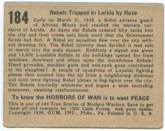 | Horrors Of War | 184 (front) (back) | Philadelphia Gum Company | $10.00 | Slight corner wear |